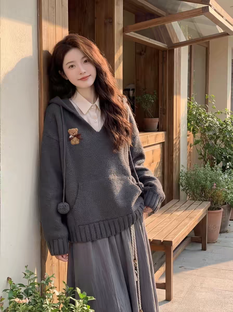 韩系早春季穿搭灰色连衣裙女2026超火春装一整套小个子高级感衣服