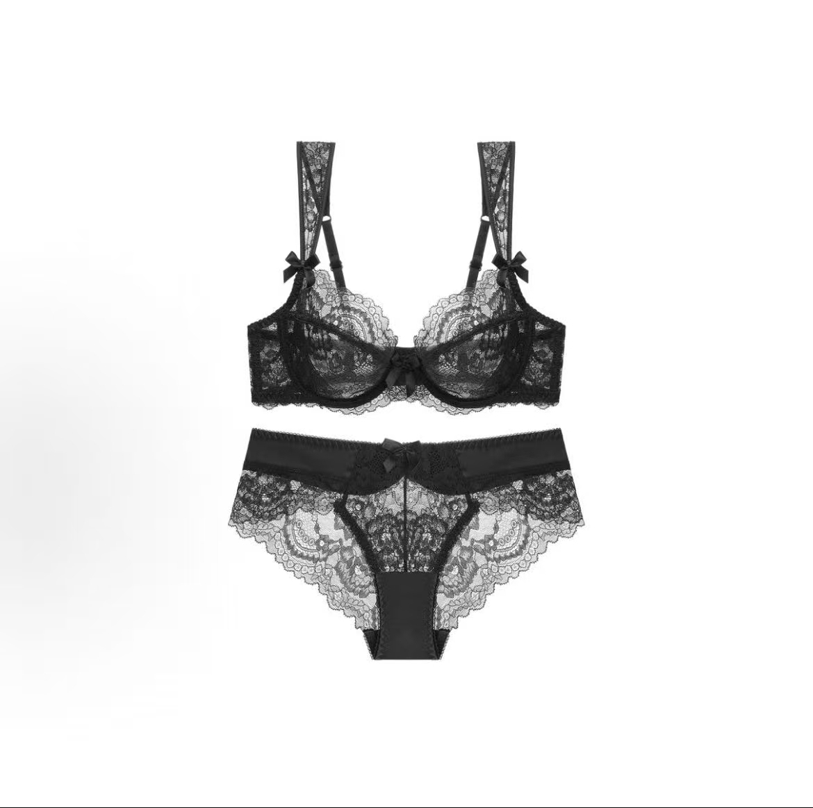 猫人 纯欲性感大胸小聚拢蕾丝文胸三角中腰内裤内衣裤套装女款